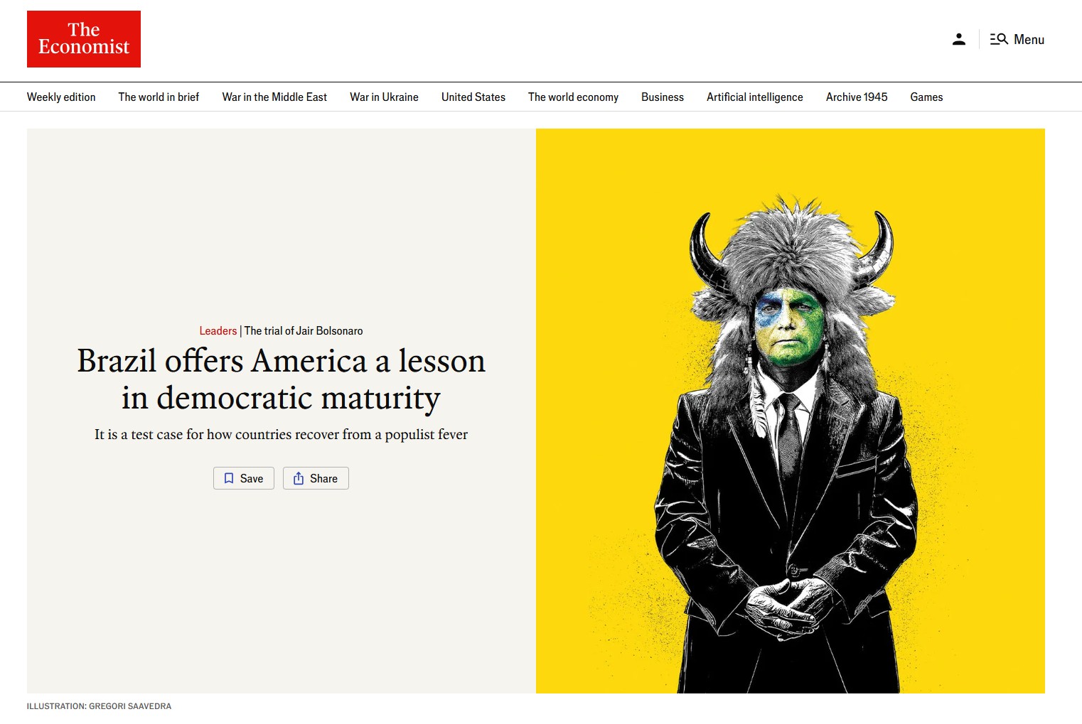 A Economist publicou três reportagens sobre o julgamento de Jair Bolsonaro. A mais recente classifica a tentativa de golpe de 8 de janeiro de 2023 como "esquisita e bárbara", descrevendo o clima de festa nos acampamentos em frente ao quartel de Brasília.